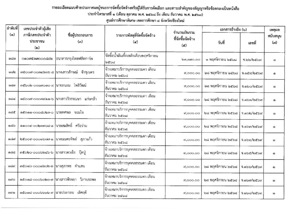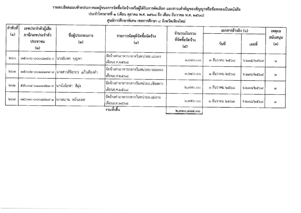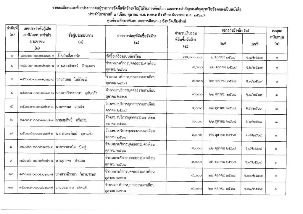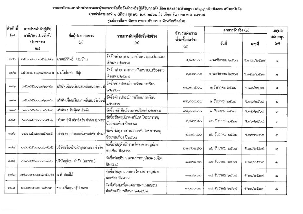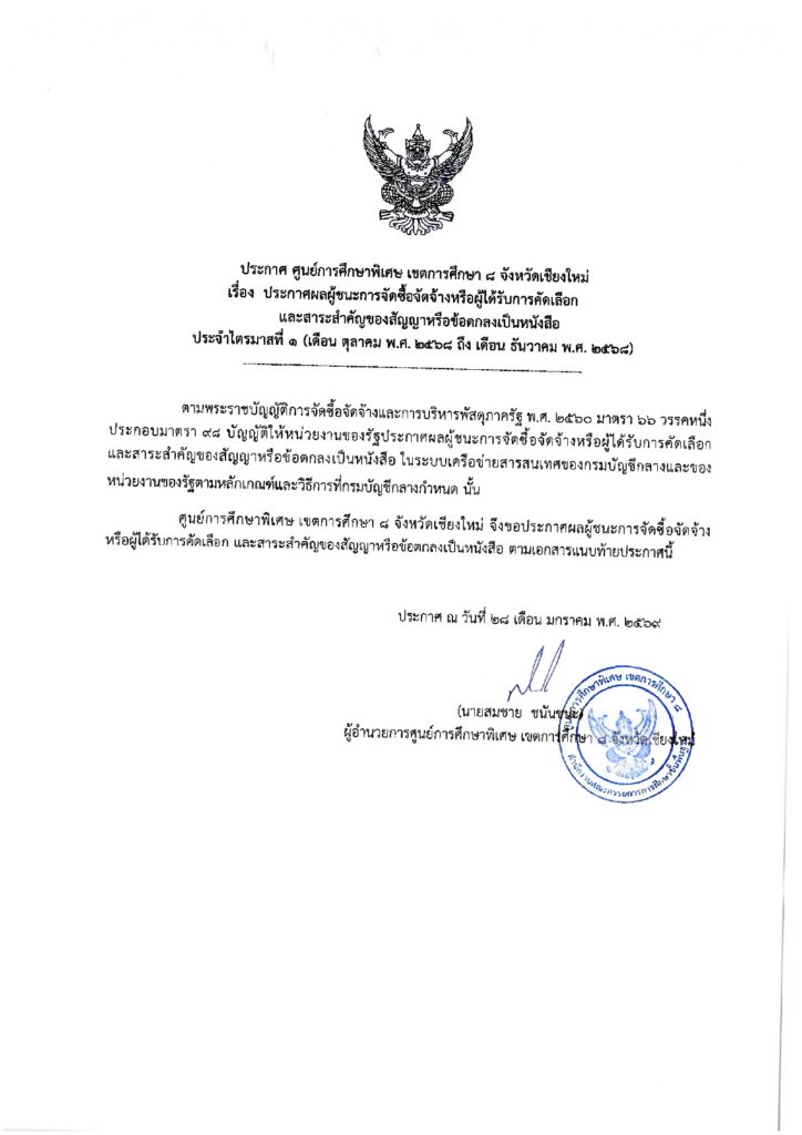 เรื่อง ประกาศผลผู้ชนะการจัดซื้อจัดจ้างหรือผู้ได้รับการคัดเลือก และสาระสำคัญของสัญญาหรือข้อตกลงเป็นหนังสือประจำไตรมาสที่ 1 (เดือน ตุลาคม พ.ศ. 2568 ถึง เดือน ธันวาคม พ.ศ. 2568)