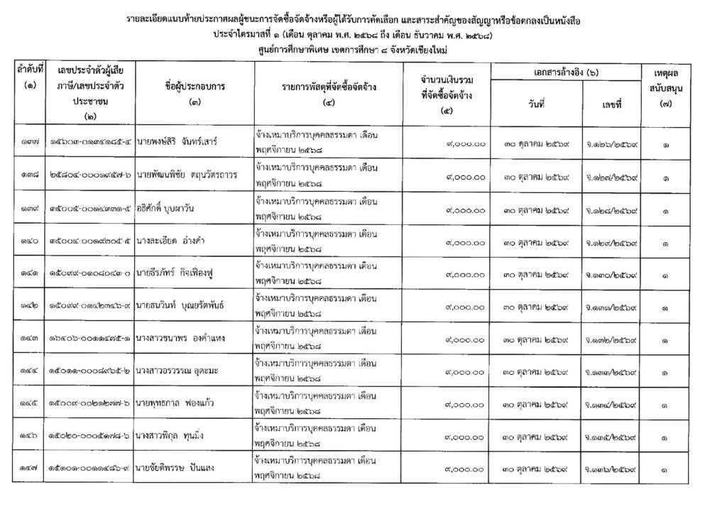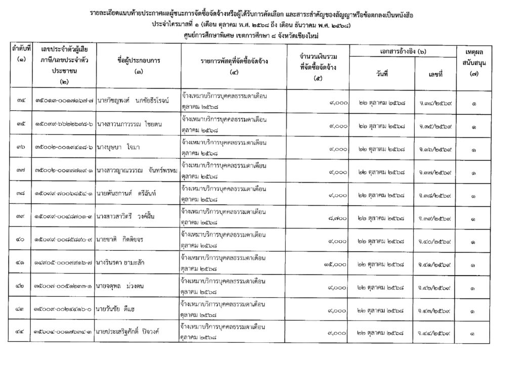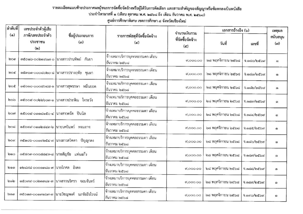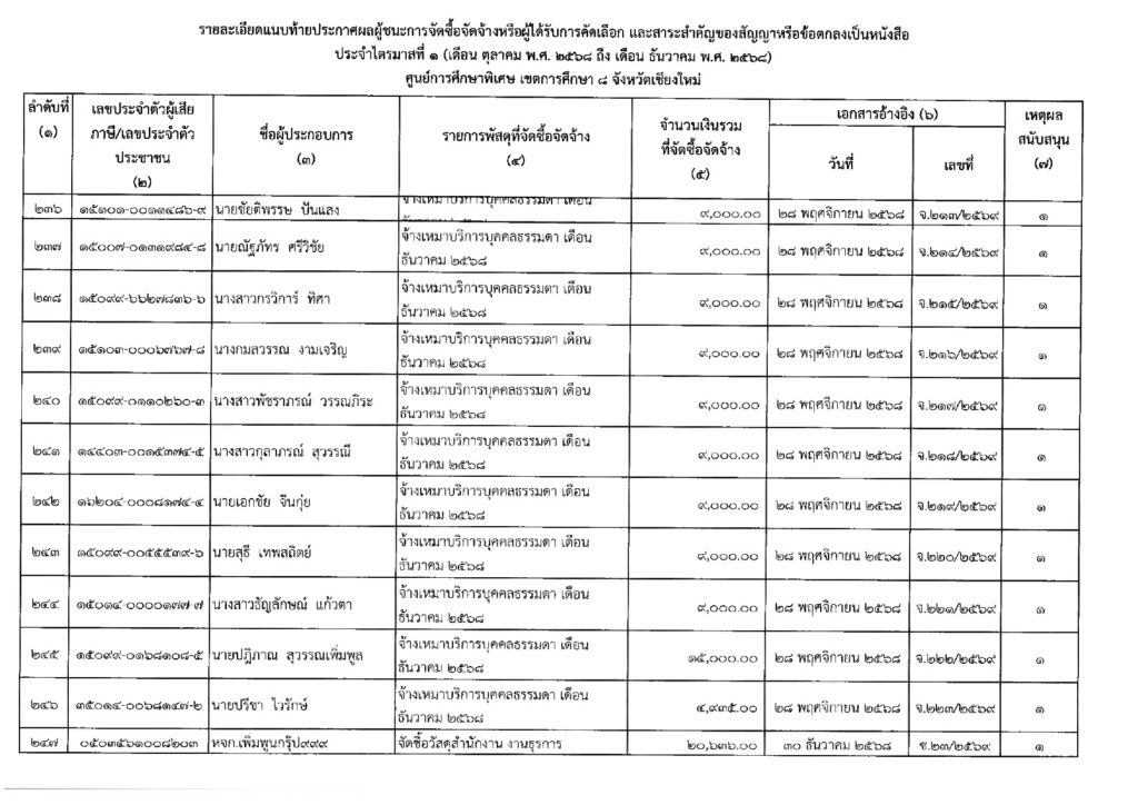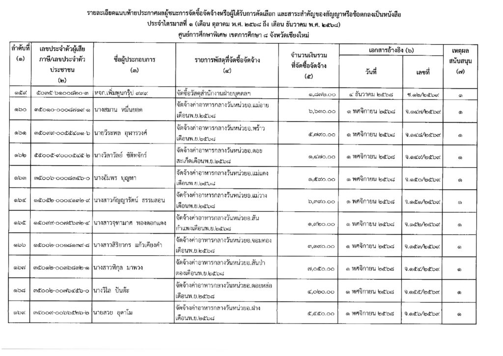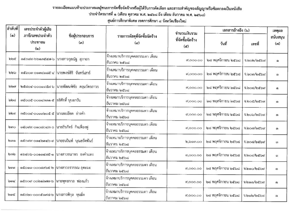 เรื่อง ประกาศผลผู้ชนะการจัดซื้อจัดจ้างหรือผู้ได้รับการคัดเลือก และสาระสำคัญของสัญญาหรือข้อตกลงเป็นหนังสือประจำไตรมาสที่ 1 (เดือน ตุลาคม พ.ศ. 2568 ถึง เดือน ธันวาคม พ.ศ. 2568)