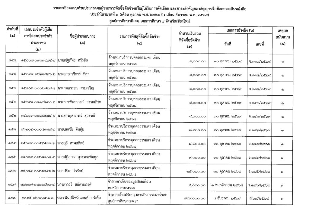 ประกาศ ศูนย์การศึกษาพิเศษ เขตการศึกษา 8 จังหวัดเชียงใหม่